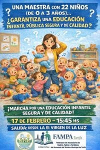 Las familias de la Escuela Infantil de Tarifa están llamadas a participar en una concentración convocada por la AFA Adarve Tarifa para reclamar una respuesta inmediata ante las carencias que, según denuncian, afectan al centro desde el inicio del curso escolar.