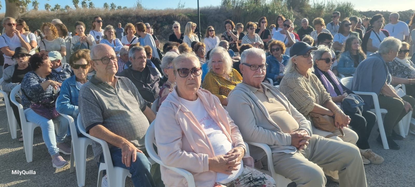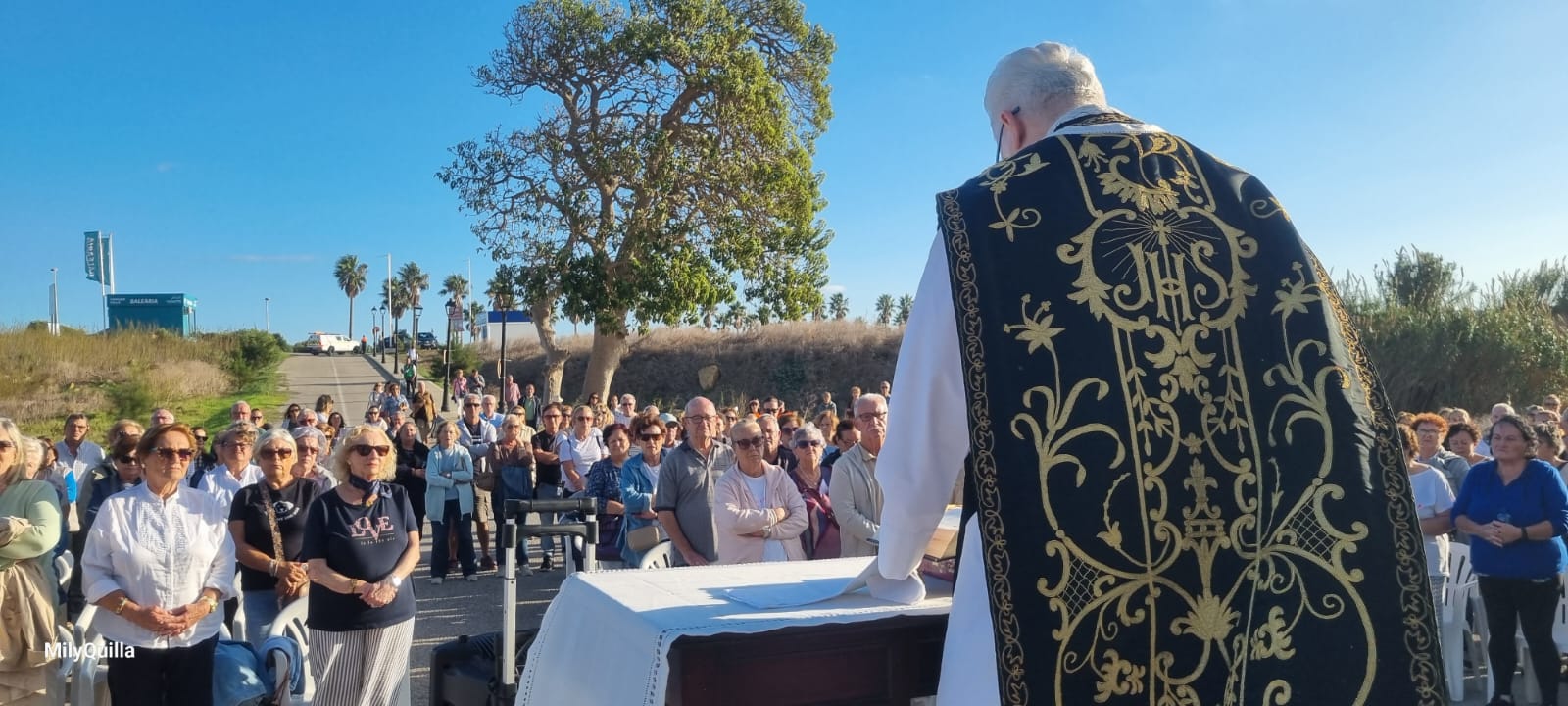 La misa, que tuvo lugar en la explanada de acceso al camposanto, reunió a numerosos vecinos y vecinas que acudieron a rendir homenaje a sus seres queridos. La Delegación Municipal de Cementerio, en coordinación con la Parroquia, preparó el espacio para facilitar la participación de los asistentes y ofrecer un entorno de recogimiento y respeto.
