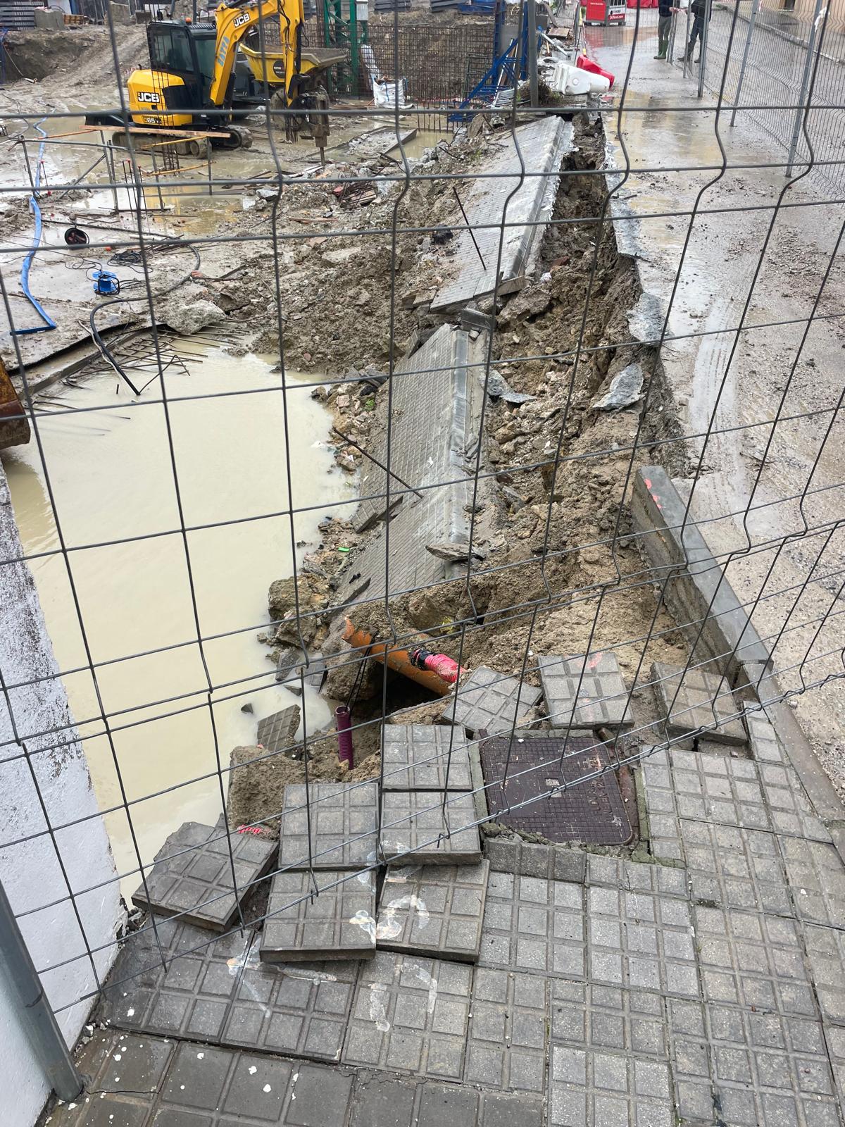 Hundimiento de la acera en la obra de La Tarifeña en la calle San Sebastián