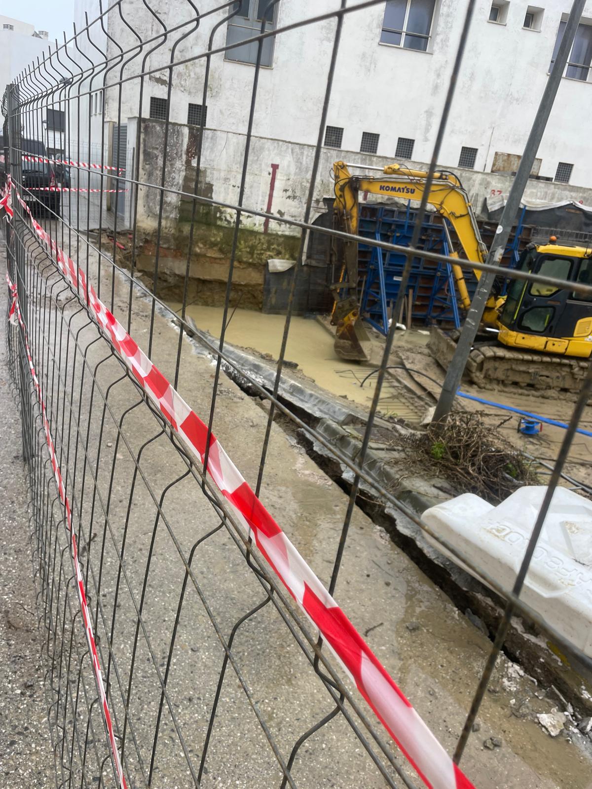 La obra de La Tarifeña, promoción impulsada por el Grupo Q en el entorno de la antigua Conservera de Tarifa, vuelve a situarse en el centro de la atención tras el hundimiento de una parte del acerado en la zona perimetral de la actuación.