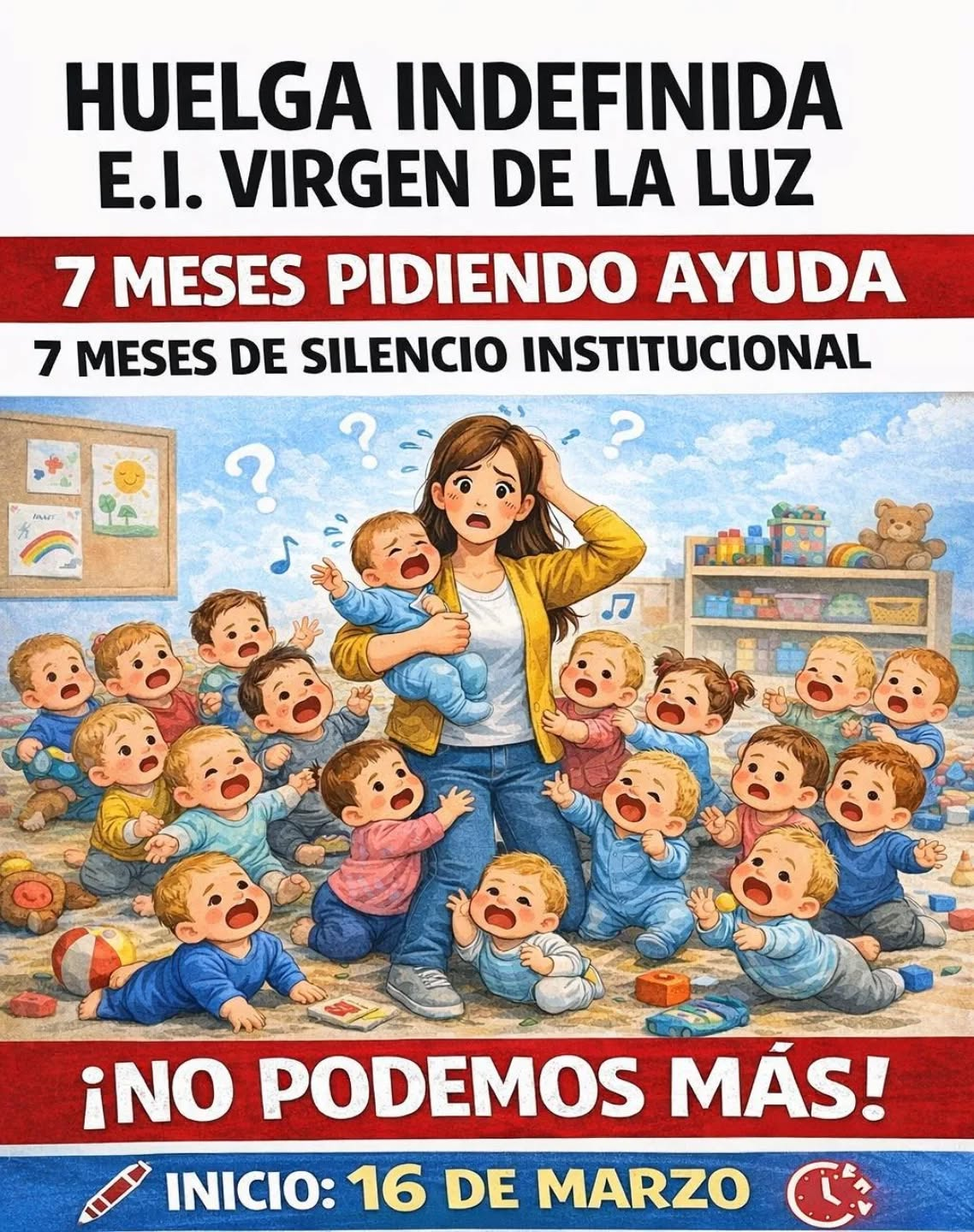 Las familias aseguran que desde hace tiempo vienen observando carencias de recursos humanos, materiales y económicos que, según indican, están afectando directamente a la calidad de la atención educativa que reciben los menores de 0 a 3 años. En el comunicado señalan que actualmente existe una insuficiencia de personal técnico educativo y de limpieza, lo que dificulta el desarrollo normal de la actividad diaria y la atención individualizada que requiere el alumnado.