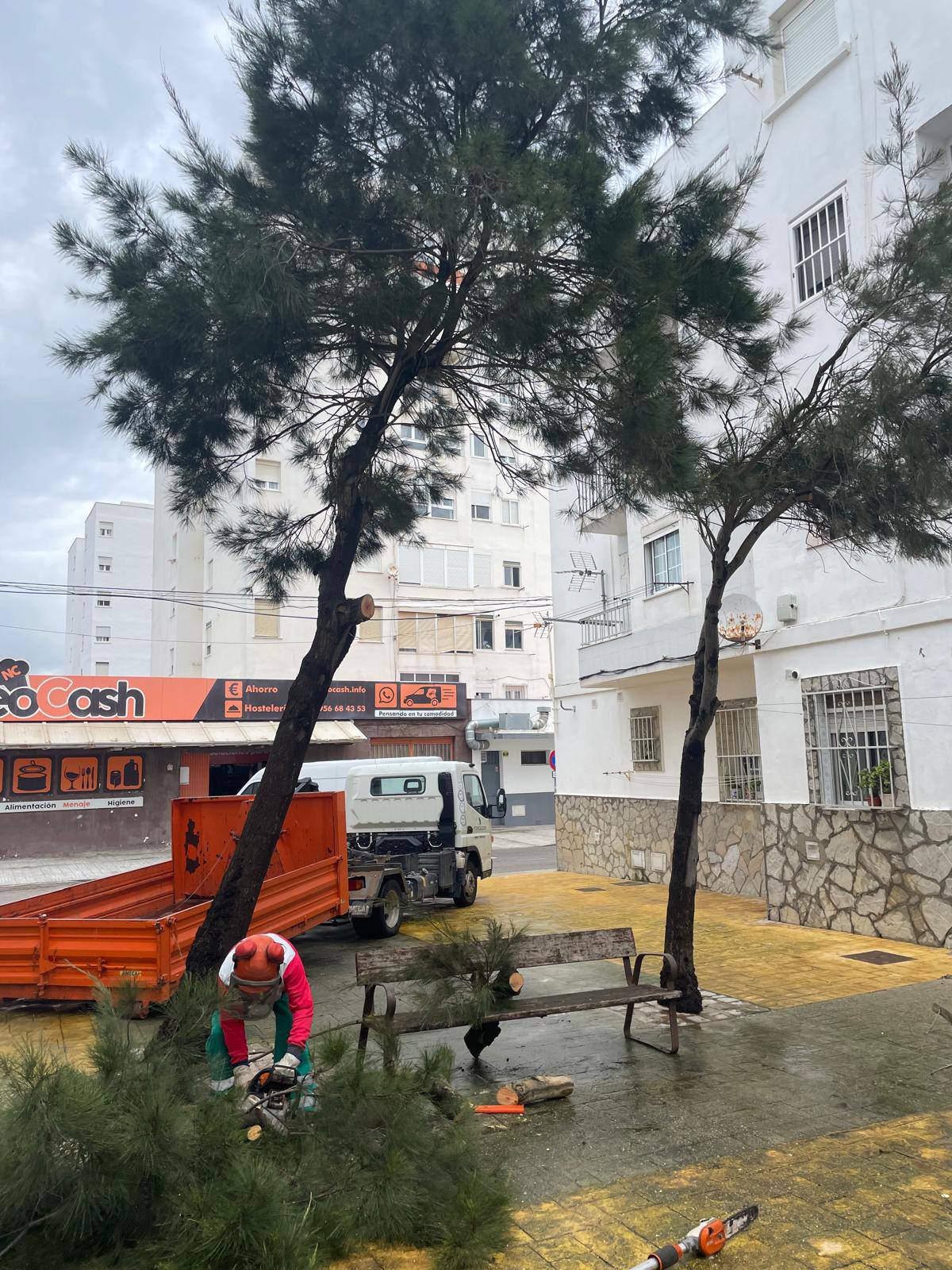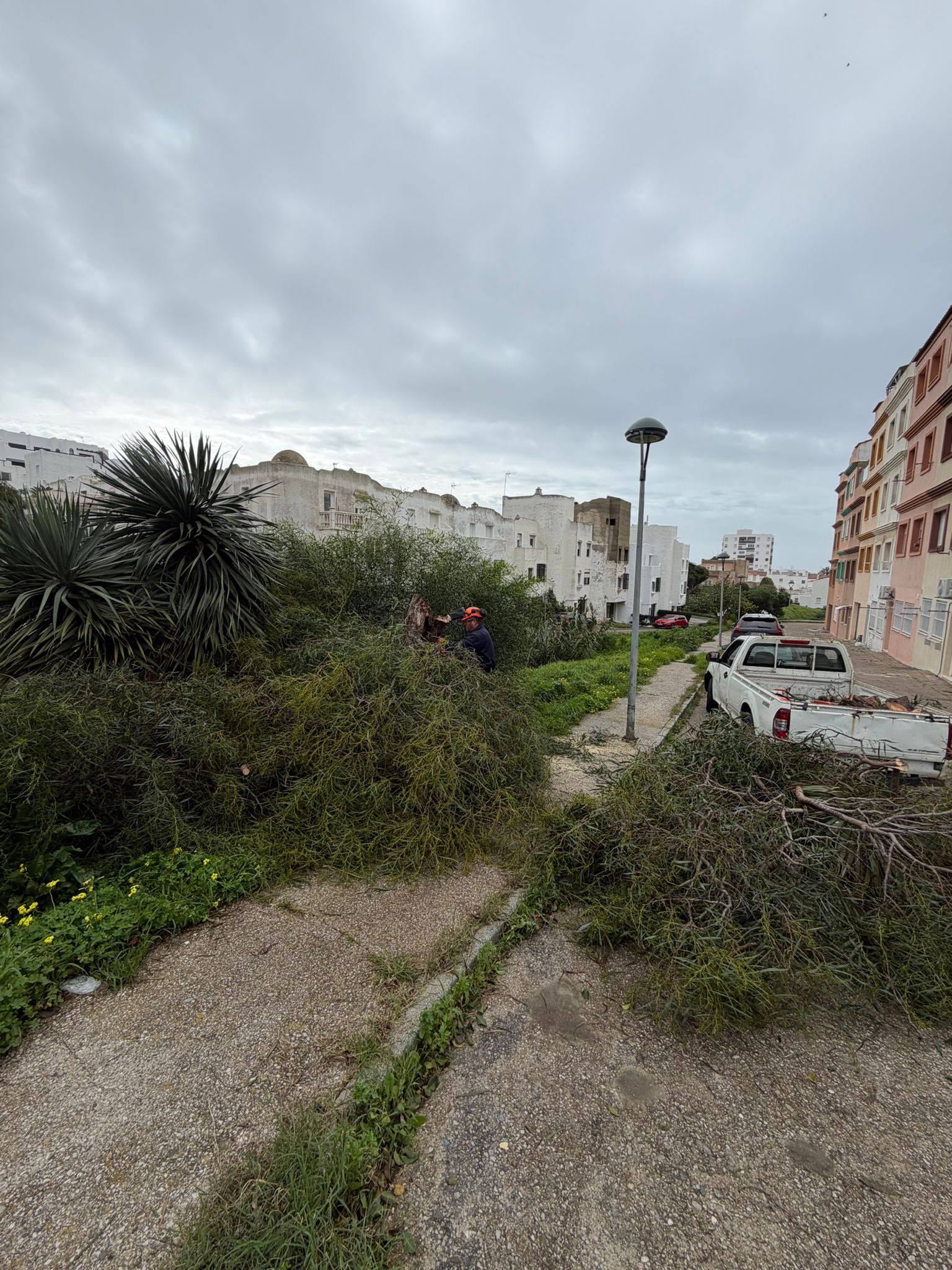 Son otras imágenes ilustrativas de las incidencias atendidas hasta ahora por el Ayuntamiento de Tarifa ante el paso de la borrasca Leonardo. En la plazoleta Cinco de Oros, así como en barriadas del municipio, como el grupo de viviendas próximo a las calles Martínez Romero y Coronel Cadalso, operarios municipales han retirado ramas y restos de vegetación para garantizar la seguridad y restablecer la normalidad.