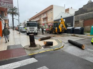 El Ayuntamiento ha procedido a la retirada de una palmera situada en la avenida Andalucía tras detectarse un movimiento anómalo del ejemplar que hacía prever una caída inminente, con el consiguiente riesgo para peatones y vehículos.