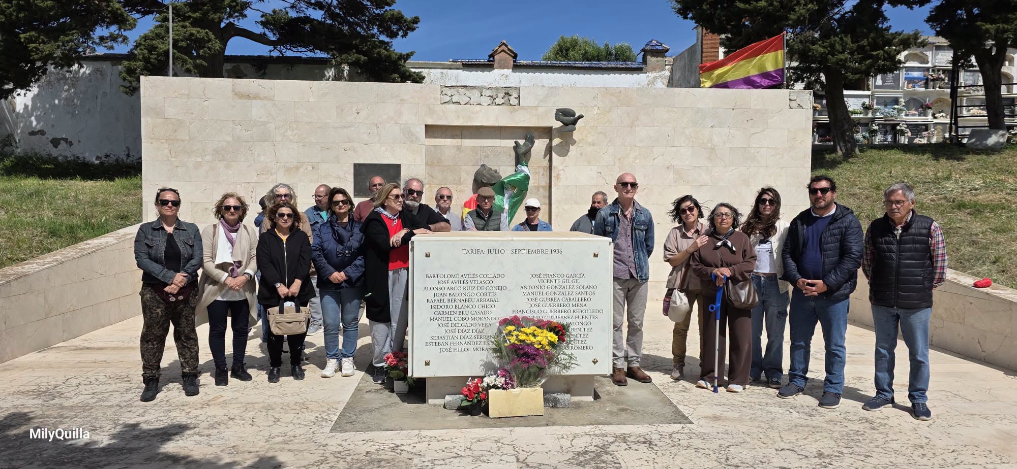 La cita ha tenido lugar coincidiendo con el aniversario de la proclamación de la Segunda República española, una fecha significativa que ha servido como marco para este homenaje. En torno al monumento que recoge los nombres de las víctimas de la represión, los participantes han realizado una ofrenda floral como gesto de reconocimiento y recuerdo.