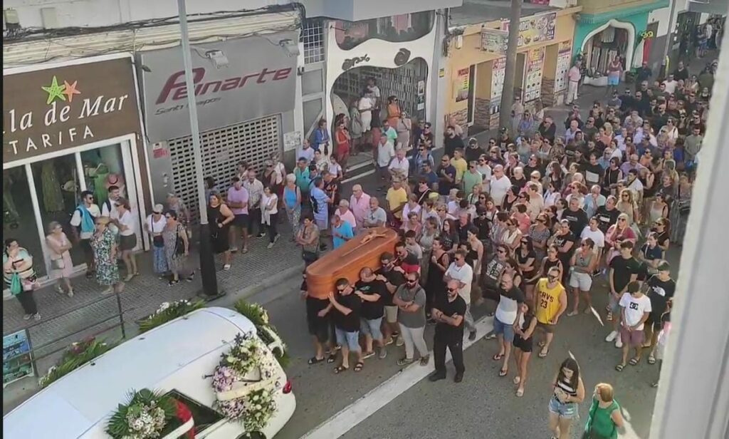 En la tarde de hoy, pasadas las siete, el cortejo fúnebre con el féretro de Juan Antonio Ortiz a hombros de sus compañeros de la Comparsa de Tarifa, ha recorrido por última vez la avenida Batalla del Salado hasta la Puerta de Jerez, donde a modo de homenaje, sus compañeros han elevado el cuerpo inerte de Juan Antonio para luego, dejarlo reposar en el interior del coche fúnebre.
