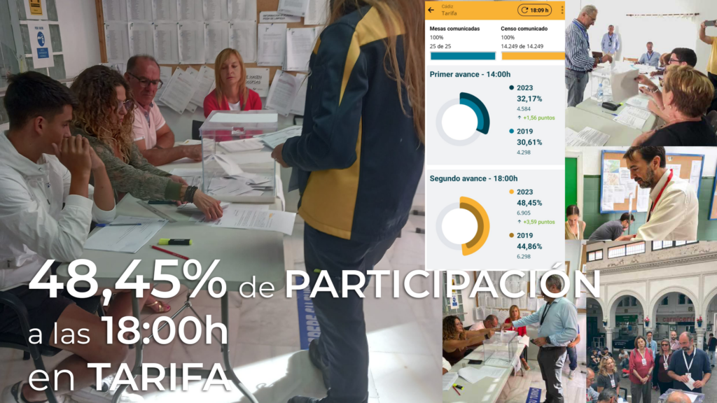 3,59 % más de participación alcanzando el 48,45 % a las 18:00 h en Tarifa