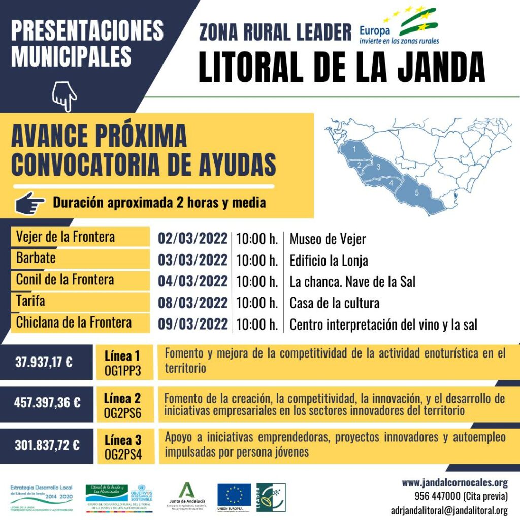 Se trata de tres líneas de ayudas enmarcadas en la Estrategia de Desarrollo Local de la Zona Rural Leader del Litoral de la Janda, submedida 19.2 del PDR de Andalucía 2014-2020.