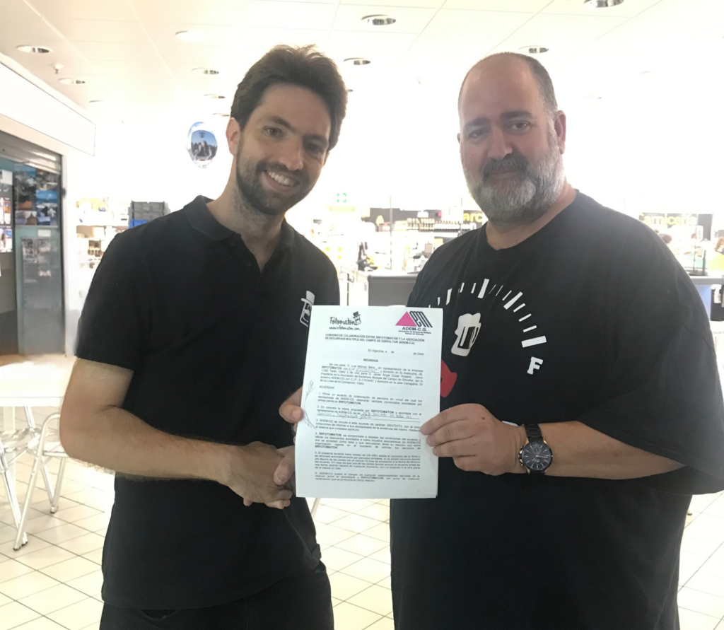 Por parte del Sr. Fotomatón, D. Luis Alfonso Sena y por parte de ADEM-CG, su presidente, D. Javier Cózar Rosano, han firmado un convenio de colaboración, por el cuál las personas asociadas de esta asociación campogibraltareña, podrán obtener descuentos en cualquiera de los servicios que prestan.