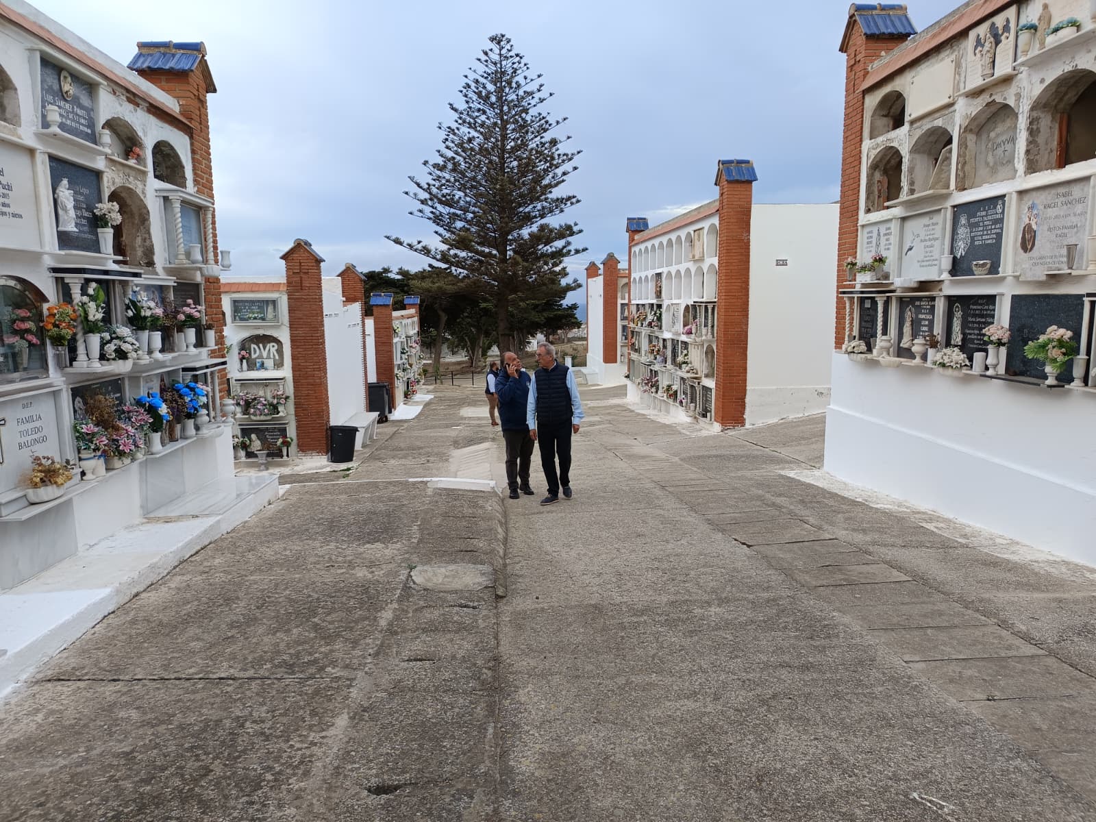 El alcalde de Tarifa, José Antonio Santos, y el concejal de Cementerio y Obras y Servicios, Carlos Blanco, han visitado hoy las mejoras realizadas recientemente en el cementerio municipal, coincidiendo con los días previos a la festividad de Todos los Santos y los Fieles Difuntos.