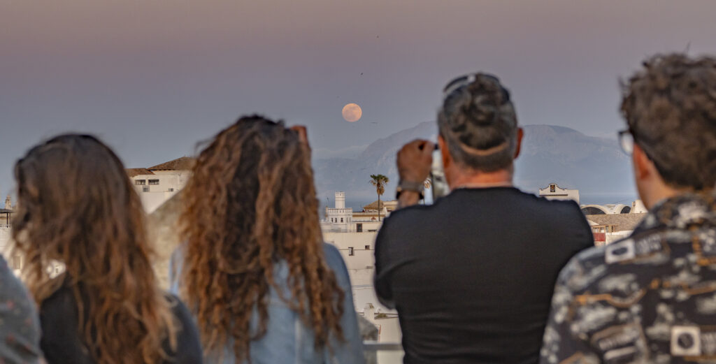 El evento se decidió celebrar el 3 de junio por la Luna llena de esa noche, y no defraudó, desde la azotea de Tarifa Tower los asistentes fueron testigos de como se elevaba al firmamento tras el continente africano, mientras su reflejo iluminaba las aguas del Mediterráneo y el Atlántico. No es poético, es descriptivo.