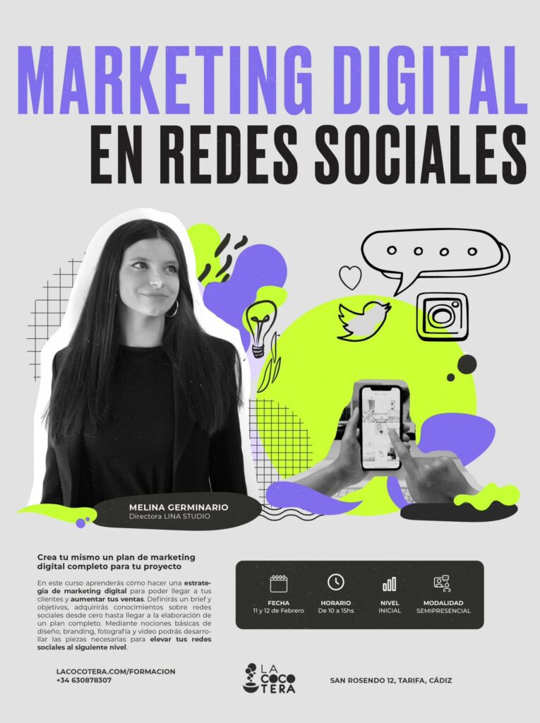 ‘La Cocotera’ acerca a los tarifeños un nuevo curso. En esta ocasión se trata de una formación enfocada al marketing digital para redes sociales. El curso tiene una duración de dos días y será impartido por Melina Germinario, experta en diseño y marketing digital.