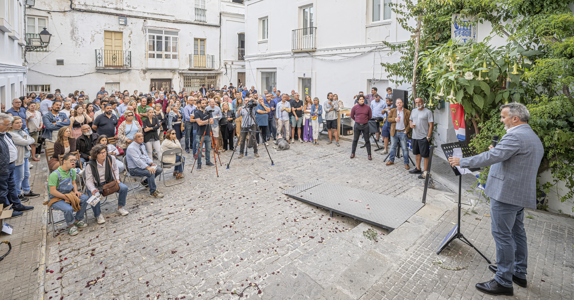 Benítez subido en la escalera de la Iglesia de San Francisco realizó en discurso lleno de alusiones a su tierra, vecinos y razones por las que decidió dar el paso hace años “pese a que ahora es cuando el proyecto se hace visible”.