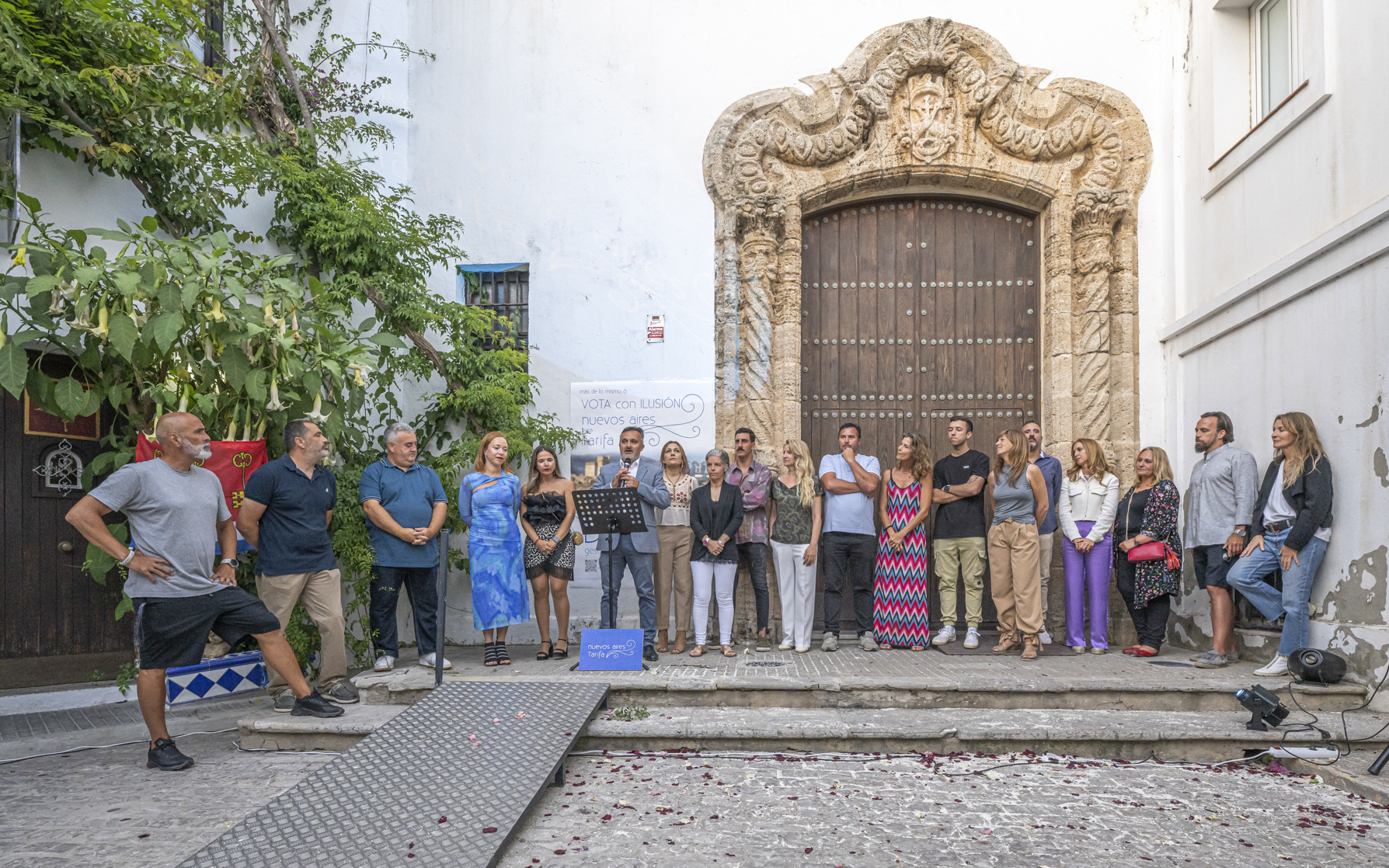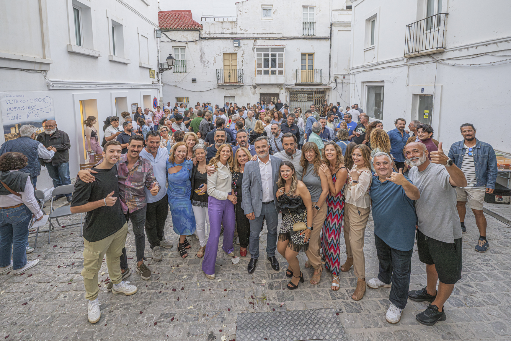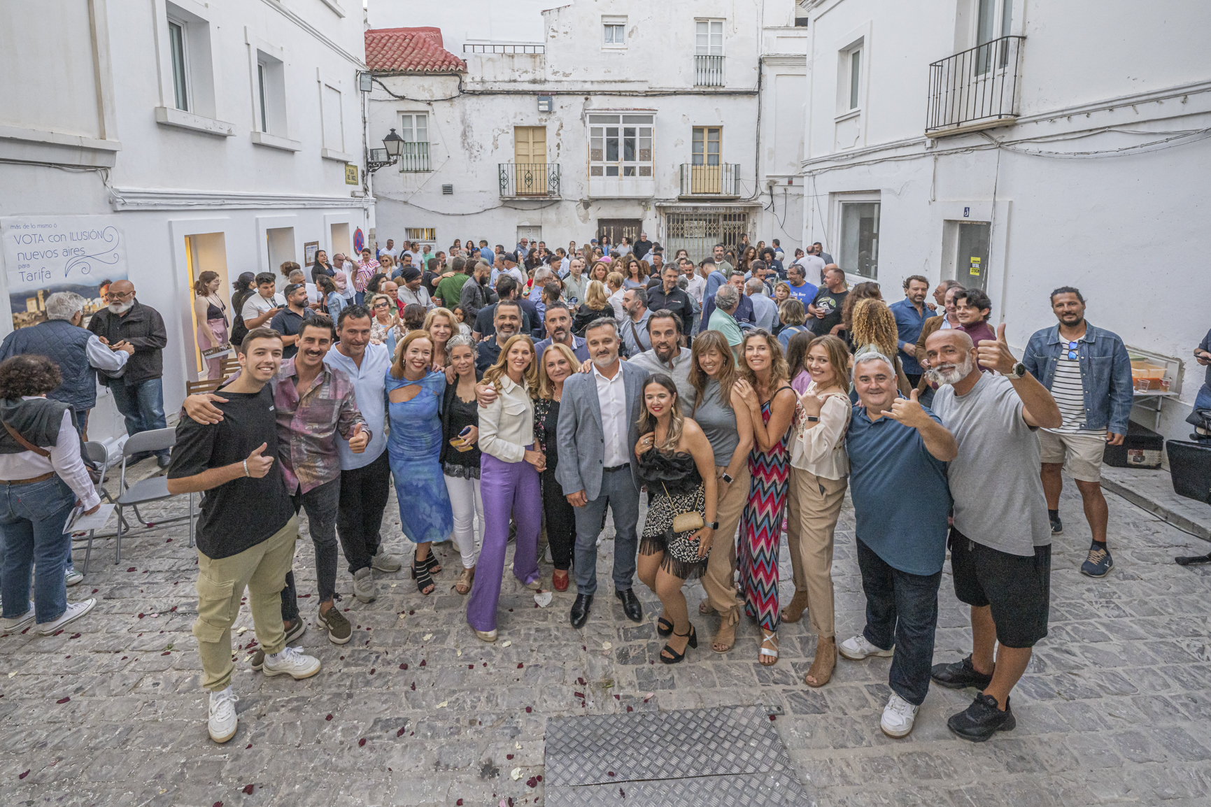 Uno a uno y ovación tras ovación, Benítez fue presentando a los 20 integrantes de su lista, tres mujeres entre los cuatro primeros, dos “tarifeñas del mundo”, referentes del sector pesquero, hostelero o del comercio minorista de Tarifa, así hasta completar una amalgama de nombres y perfiles “que son una muestra exacta la realidad de Tarifa”.
