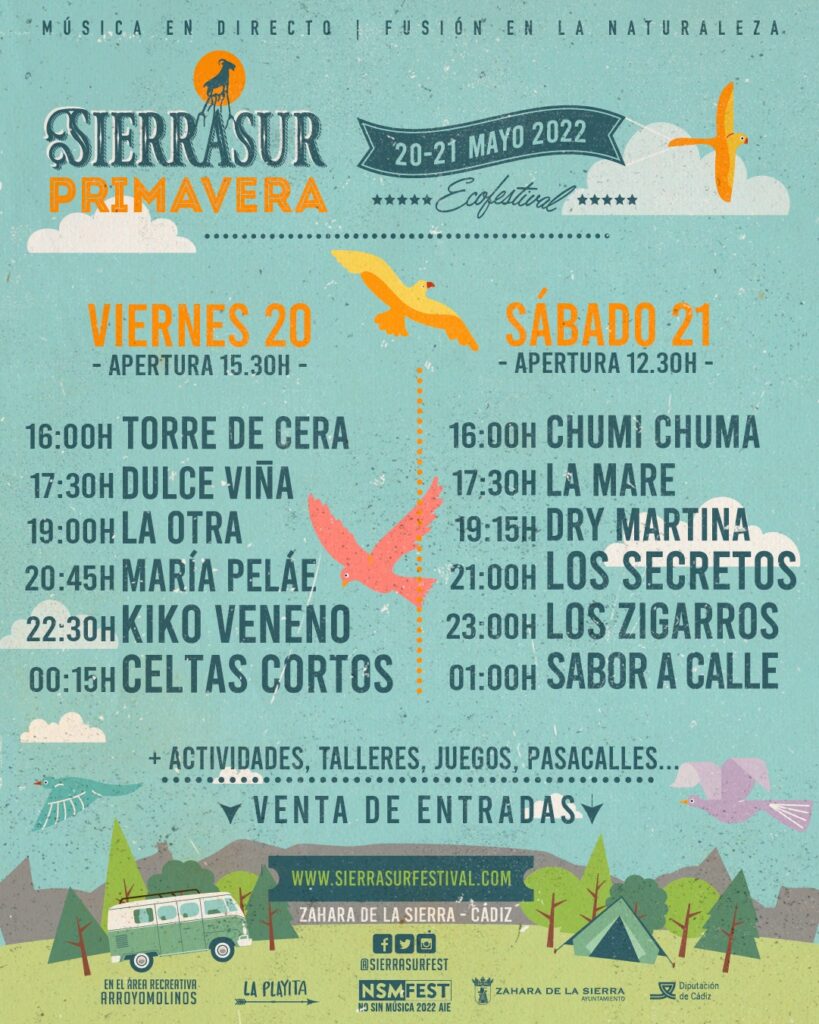 SIERRASUR es el festival ideal para pasarlo a lo grande con toda la familia y grupos de amigos que amen la naturaleza, la diversión y por supuesto la música. La espectacular ubicación en el Área recreativa Arroyomolinos de Zahara de la Sierra que se convertirá este fin de semana, 20 y 21 de mayo, en un auténtico patio de recreo para grandes y pequeños.