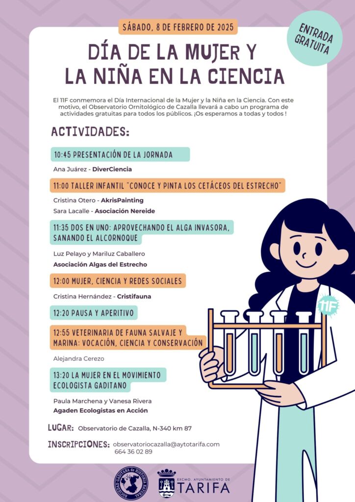 El Ayuntamiento de Tarifa celebra el «Día Internacional de la Mujer y la Niña en la Ciencia en 2024» y lo hace con un evento basado en talleres infantiles y una serie de ponencias de mujeres que trabajan en el Estrecho a través de la investigación científica.