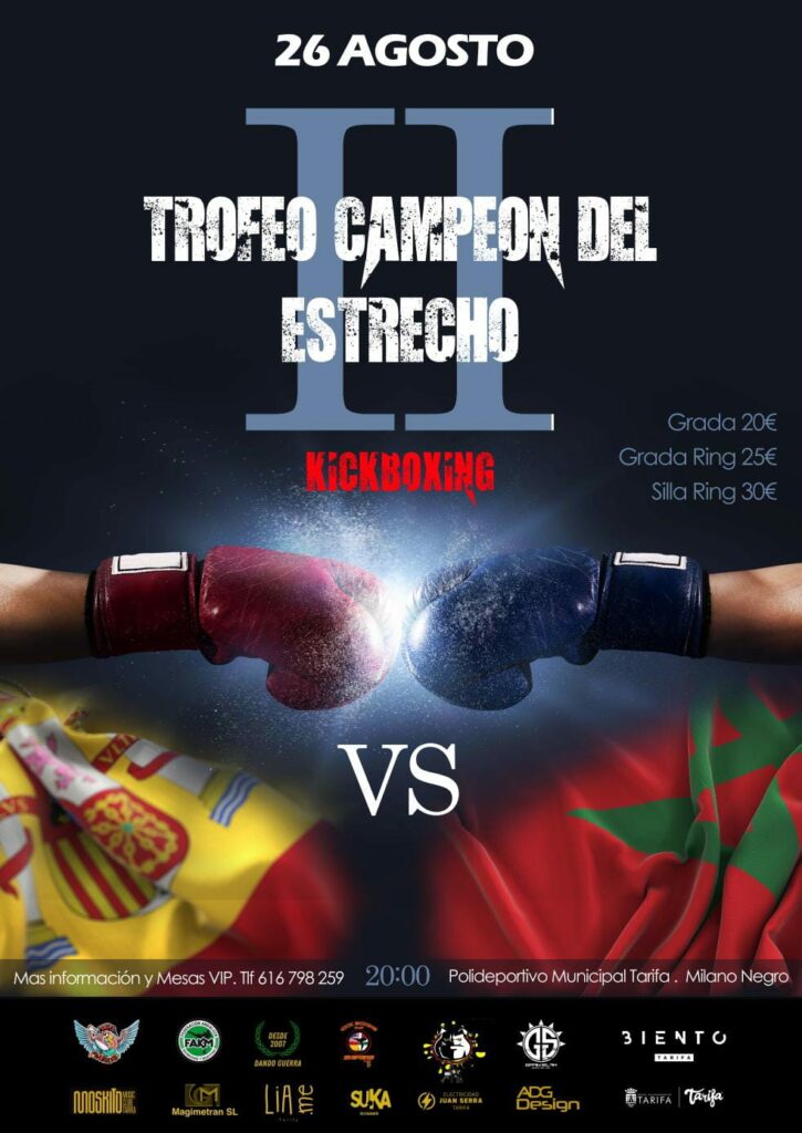 El próximo 26 de agosto, a las 20:00h, Tarifa tiene una cita internacional con el deporte, en este caso de contacto. El Club Snipers de Tarifa organiza este evento en el que se medirán el combinado Español y el combinado de Marruecos, y lucharán para conseguir hacerse con el II Trofeo «Campeón del Estrecho» de Kickboxing.
