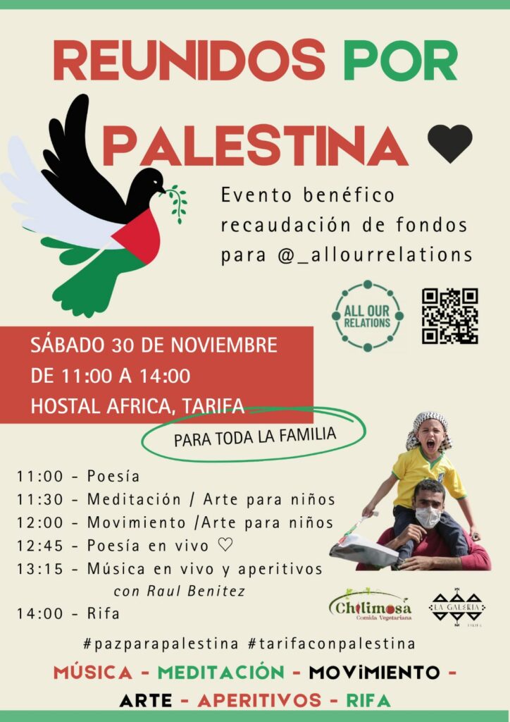 Un evento familiar en nuestra comunidad en Tarifa en solidaridad con Palestina. Nuestro objetivo es recaudar fondos y reunirnos en nuestro apoyo para el pueblo palestino. El evento recaudará fondos para @allourrelations, una organización estelar que ayuda directamente a 15 familias en Gaza.