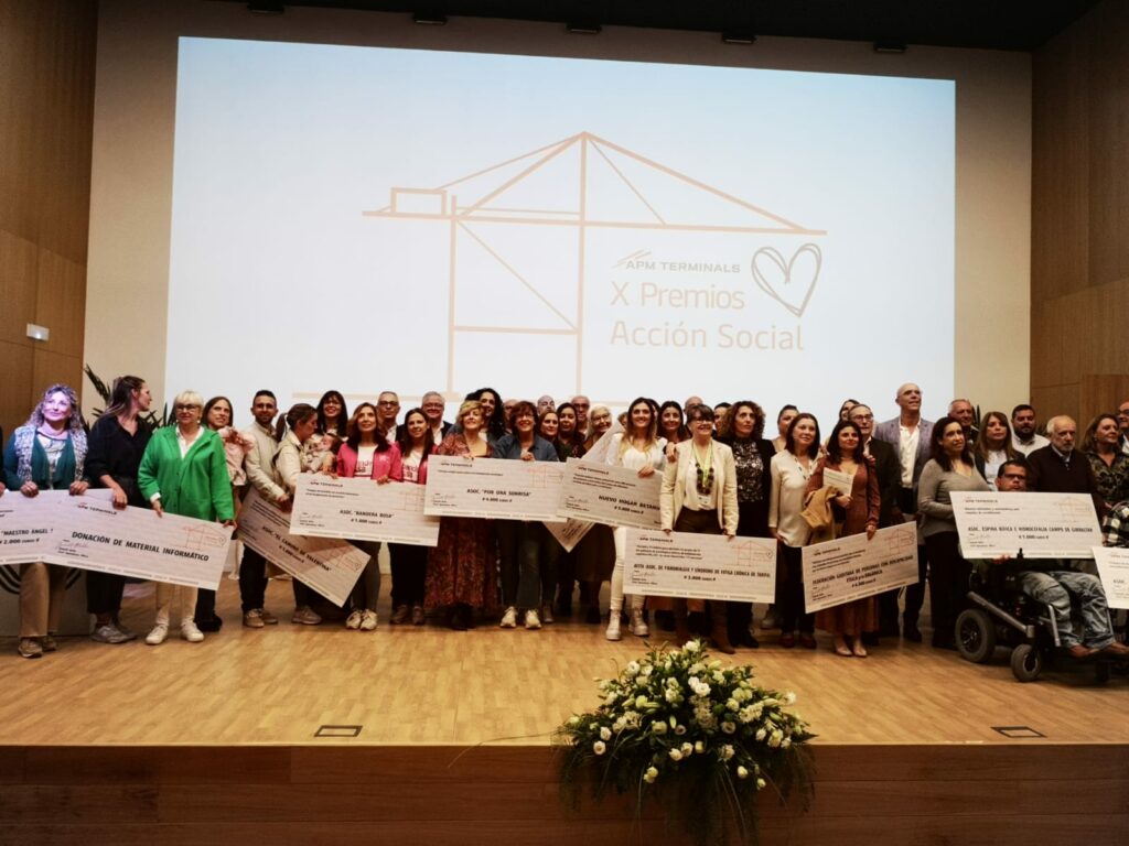 AFITA, la Asociación de Fibromialgia y Síndrome de Fatiga Crónica de Tarifa representada por Nieves Muñoz y Lola Burgueño ha sido uno de los 18 colectivos de todo el Campo de Gibraltar distinguidos con los premios Acción Social de APM Terminals Algeciras. La décima entrega se ha desarrollado en la Escuela Técnica Superior de Ingeniería. La compañía ha repartido en global 45.000 euros a los colectivos apadrinados por sus trabajadores.