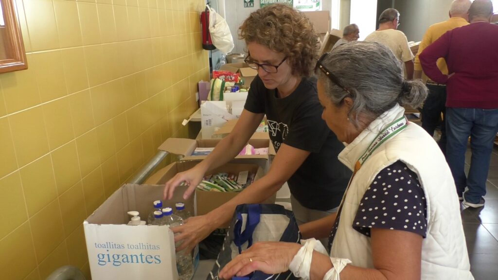 Ciudadanos voluntarios se reparten tareas y turnos para atender la clasificación y embalaje de las donaciones. Junto a los productos de limpieza, aseo personal, agua y mantas, se necesitan botas de agua y calcetines. También ropa interior, a estrenar de todas las edades.