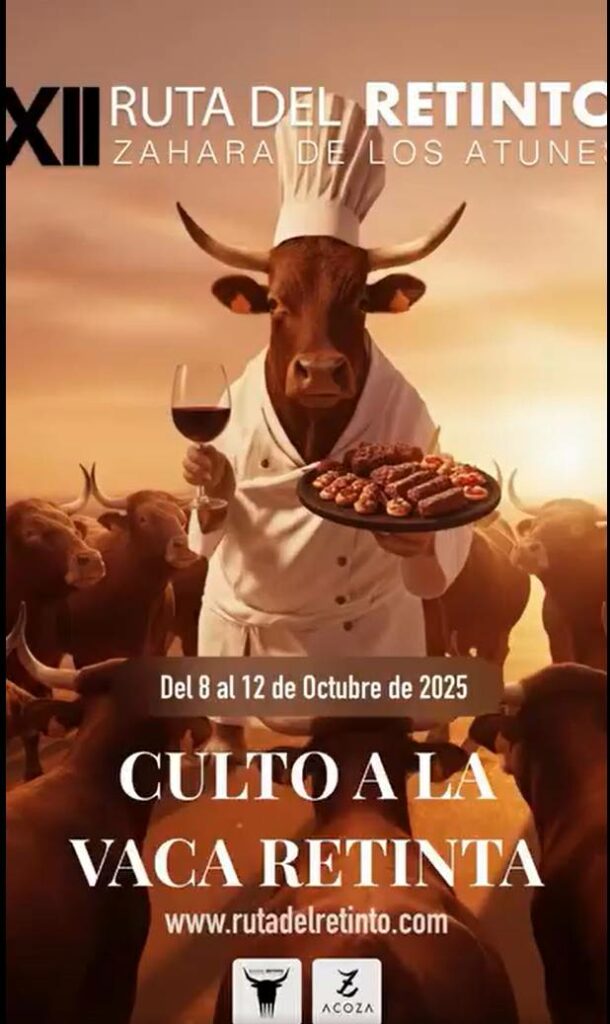 Tarifa Destino Gastronómico (TDG) el programa, estará allí….Zahara de los Atunes volverá a rendir homenaje a su producto estrella con la celebración de la XII Ruta del Retinto, que tendrá lugar del 8 al 12 de octubre de 2025. Durante cinco días, vecinos y visitantes podrán disfrutar de un evento que combina gastronomía, cultura y ocio, con la carne de vaca retinta como gran protagonista.
