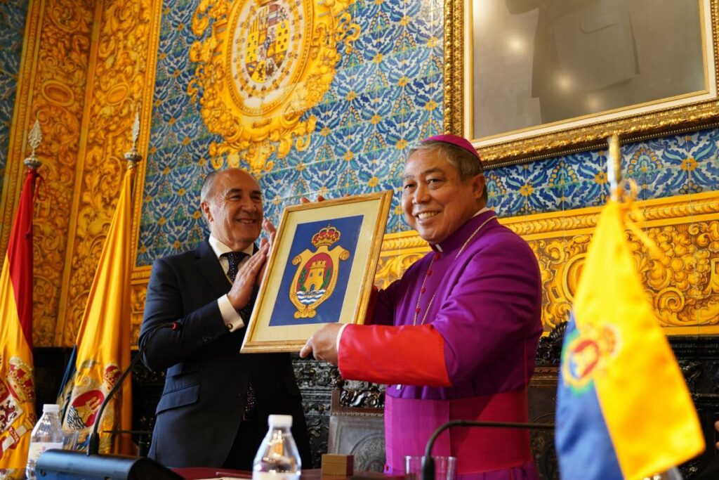 El alcalde invitó al nuncio a firmar el Libro de Honor de la ciudad y le entregó la insignia de Algeciras, expresando el agradecimiento de la ciudad por la concesión del Año Jubilar y la designación de la Iglesia de la Palma como Santuario Diocesano. En su intervención, destacó la labor social de la iglesia católica y la importancia de la colaboración entre el estamento público y las entidades eclesiásticas.