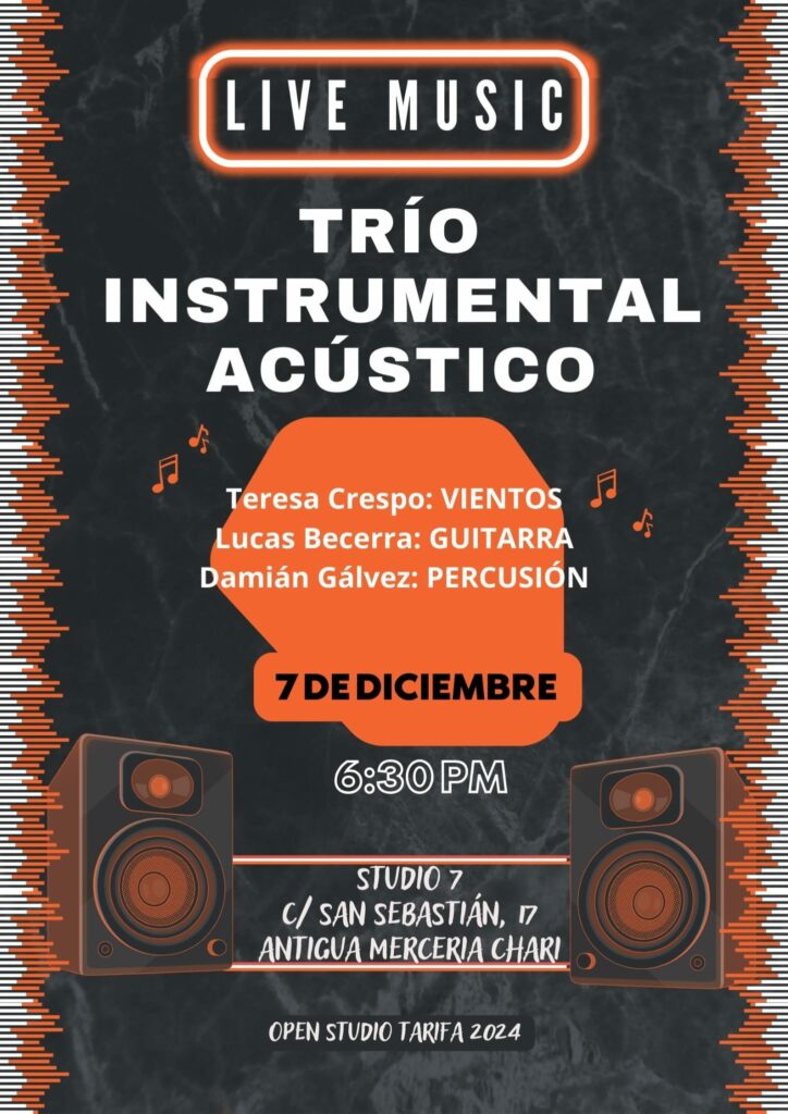 Teresa Crespo (Vientos), Lucas Becerra (Guitarra) y Damián Gálvez (Percusión) en concierto acústico hoy sábado en Tarifa
