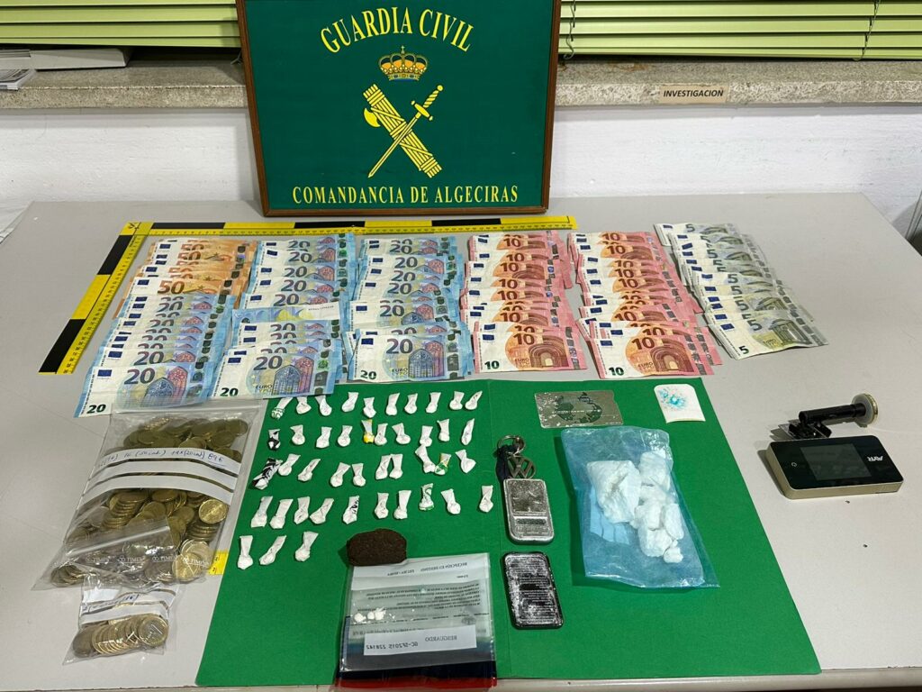 La Guardia civil diseñó un operativo para practicar un registro en un domicilio de San Roque y se procedió a la detención de una persona por delitos de tráfico y contra la salud pública. Además fueron intervenidas 40 dosis de sustancias estupefacientes (cocaína), más de 1.000 euros en dinero fraccionado para efectuar las transacciones, así como diversos instrumentos para la realización de las dosis, pesaje y producción de las sustancias estupefacientes.