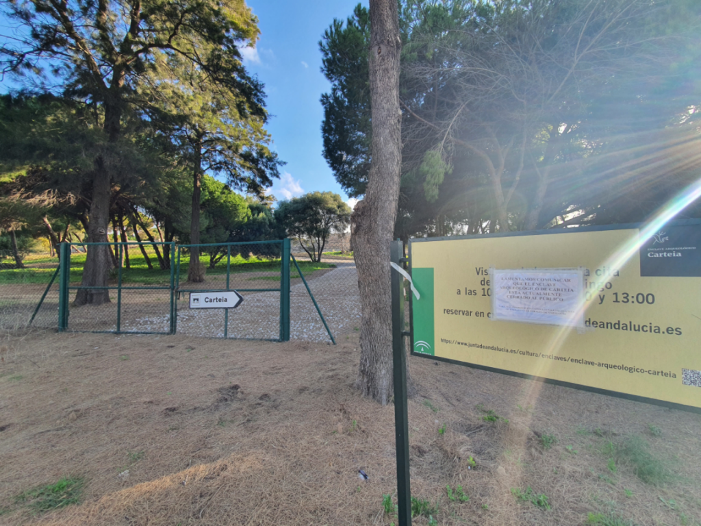 Ya hace varios días que el yacimiento arqueológico de Carteia permanece cerrado de cara al público. De hecho, este es el escueto anuncio que aparece en la web del enclave arqueológico sin que se haya podido conocer cuáles son las razones que han motivado este cierre, del cual ni si quiera se sabe si será temporal o permanente.