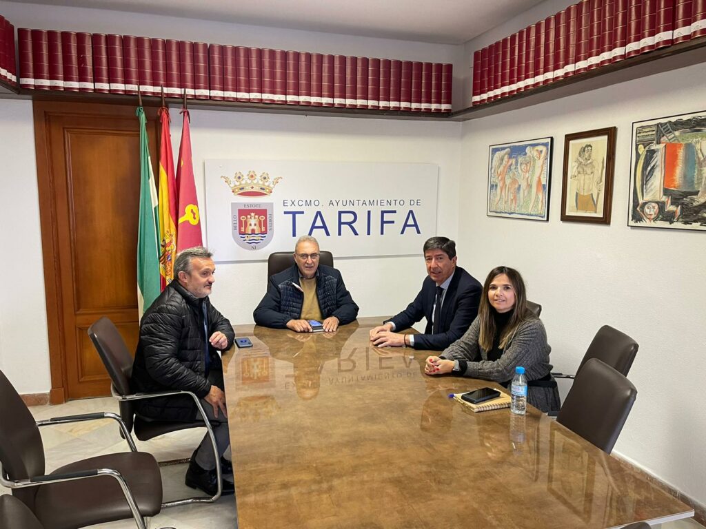 El presidente del Consejo Económico y Social de Andalucía aborda estrategias para la mejora de servicios y el impulso a la valoración del alga invasora. Juan Marín se dio cita con el Alcalde, José Antonio Santos y los concejales Jorge Benítez y Celia Rico en el Ayuntamiento de Tarifa el pasado martes.