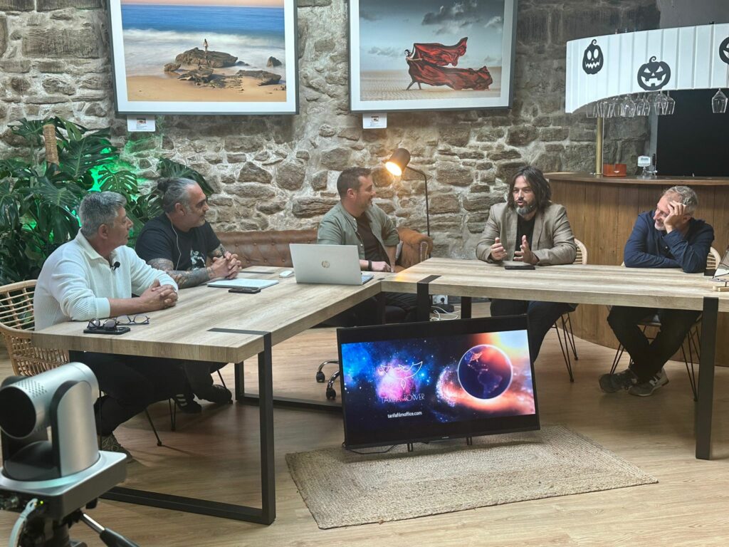 En la tertulia confluyeron de un lado el Concejal de Cultura y Turismo y Diputado de Cádiz Nacho Trujillo, acompañado a su lado de Paco Pozo, que es el Jefe de Proyectos de la Tarifa Film Office y formador de los cursos que esta oficina tarifeña del cine impartirá de manera gratuita en próximas fechas. Por otro lado, se sentaron a la mesa Mijail Mendkandjiev que es el Productor Ejecutivo de los Spain Film Studios y a su lado, Rafa Cuevas, Jefe de Producción y Location Manager.