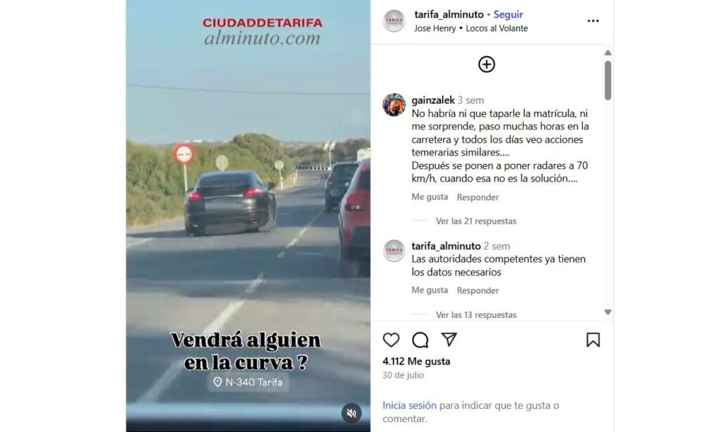 Los hechos ocurrieron en el término municipal de Tarifa, donde el conductor fue grabado realizando una conducción en zigzag, invadiendo el carril contrario y ejecutando adelantamientos en línea continua y en curva de escasa visibilidad. Estas maniobras obligaron a otros conductores a realizar maniobras evasivas para evitar una colisión frontal.