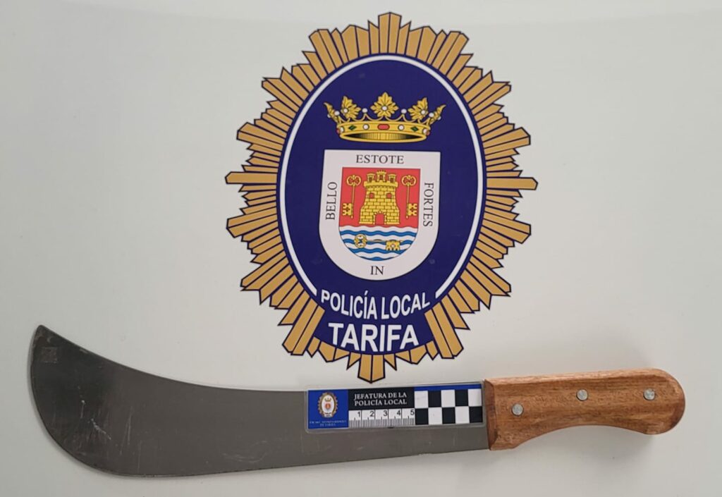 La Policía Local de Tarifa intervienen un machete de más de 40 cm en el interior de un vehículo y su conductor no era carnicero, ni leñador.