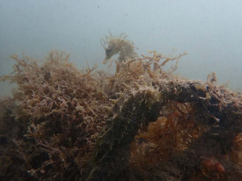 En estas inmersiones hemos visto «el gran vertido verde» que es el alga asiática Rugulopteryx okamurae , alga originaria del Pacífico noroccidental, que está actuando como especie invasora en la zona del Estrecho de Gibraltar. Cada día que pasa empeora la situación y estamos ante un impacto similar al vertido de un petrolero de 100.000 Tn en nuestro litoral