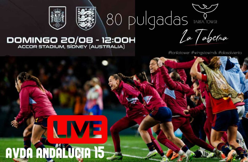Este domingo 20 de agosto a las 12:00 de la mañana en La Taberna de Tarifa Tower (Avda Andalucía 15, junto a la Puerta de Jerez) podrás disfrutar de la final del mundial de fútbol que disputan las selecciones absolutas femeninas de España e Inglaterra.