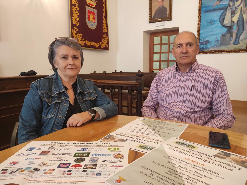 La presidenta del colectivo asistencial AFITA, Nieves Muñoz y el delegado municipal de Salud en el Ayuntamiento de Tarifa, Luis Aguilar han compartido la presentación de la agenda.