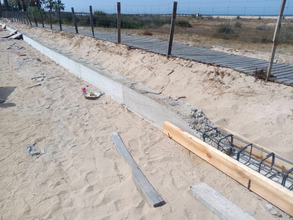 Hace dos semanas, el ayuntamiento aprobó el plan de seguridad y dio luz verde a la empresa encargada de la licitación, poniendo fin al olvido en el que había quedado este proceso. El 10 de julio, finalmente, comenzó la reconstrucción del muro, que cuando esté terminado permitirá cercar completamente el perímetro del campo de fútbol municipal. Actualmente, el acceso desde la playa ha llevado a incursiones de visitantes no deseados y un uso indebido de los recursos municipales.