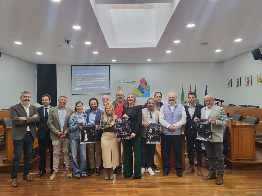 La presidenta de la Mancomunidad del Campo de Gibraltar, Susana Pérez Custodio, junto a la vicepresidenta de Turismo May Gallego, el director del IECG, Eduardo Briones, el presidente de la Sección 5ª del IECG, José Luís Moreno y los presidentes de las Peñas Flamencas de la Comarca han presentado la octava edición de “Mayo Flamenco”, iniciativa cultural que busca visibilizar e impulsar el Cante Grande en el Campo de Gibraltar. Mayo Flamenco cuenta con la colaboración de la Diputación Provincial de Cádiz y está organizado por la Peña Flamenca Cultural Linense, Sociedad del Cante Grande de Algeciras, Peña Flamenca Sanroqueña, Peña Flamenca Fosforito, de Los Barrrios y Peña Cultural Flamenca del Valle del Guadiaro.