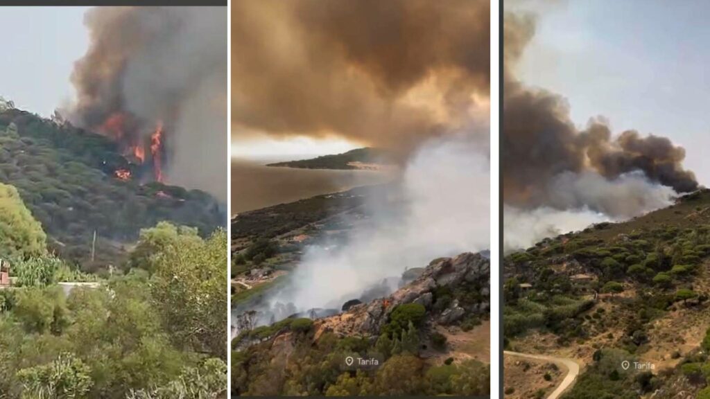 Los medios de extinción siguen trabajando en la zona del incendio declarado en Tarifa, que ha desalojado a 1.500 personas.