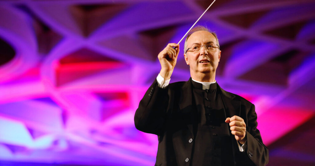 Monseñor Marco Frisina ha compuesto las más prestigiosas y exitosas obras musicales católicas contemporáneas y es el director del Coro de la Diócesis de Roma. Por otro lado, ha participado en prestigiosos foros y seminarios sobre música litúrgica, además de organizar numerosos macro conciertos multitudinarios en numerosisimos países del mundo.