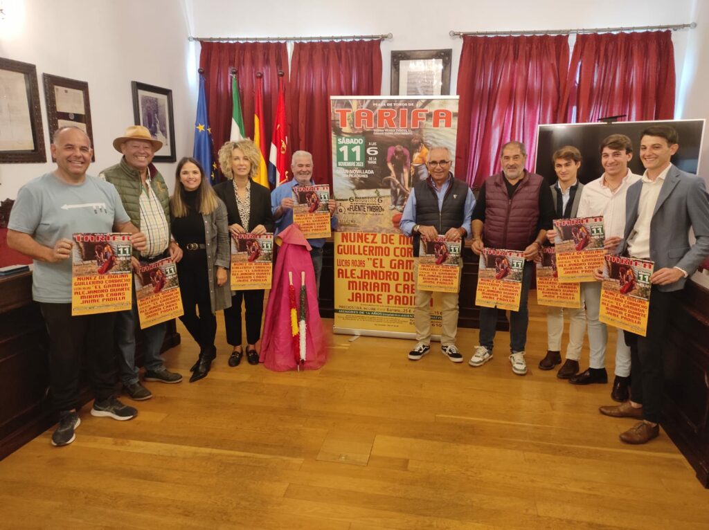 La novillada del día 11 en Tarifa dará oportunidad a jóvenes de toda la comarca. Parte de lo recaudado será para ayudar a hermandades y cofradías de la ciudad. El salón de plenos del Ayuntamiento de Tarifa ha acogido este mediodía la presentación de la “Novillada sin picadores” prevista para el próximo 11 de noviembre en Tarifa, a partir de la seis de la tarde.