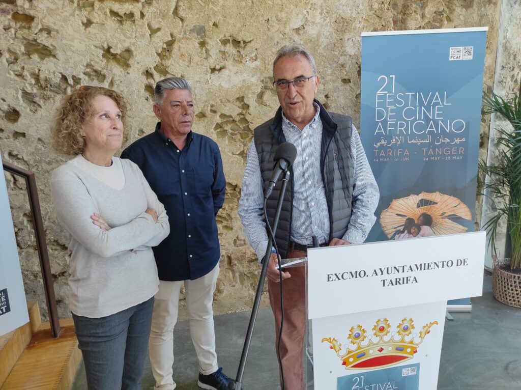 El Alcalde de Tarifa, José Antonio Santos, el concejal de Cultura y representante de la Diputación de Cádiz, Nacho Trujillo y la directora del FCAT ha presentado hoy las novedades de una edición que comienza el próximo viernes, 24 de mayo en Tánger. La inauguración formal se desarrollará un año más en la ciudad vecina en una apuesta el carácter transfronterizo de un evento que es puente y escaparate de culturas.