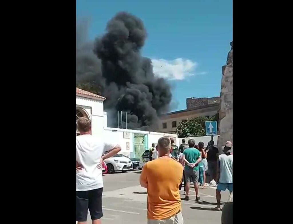 Según fuentes un vehículo del depósito municipal situado en el antiguo cuartel de Infantería ha salido ardiendo, la columna de humo es visible desde numerosos puntos de Tarifa. En el