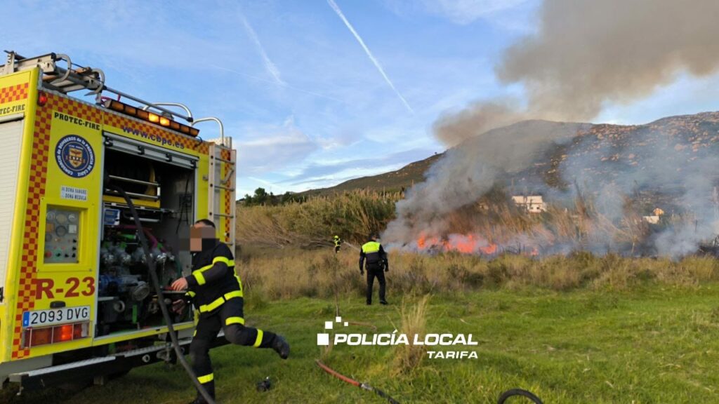 Bomberos y Policía Local Tarifa intervienen en un incendio en zona N 340 junto Hotel Dulce Nombre, siendo sofocado. En el mismo no ha resultando afectada ninguna vivienda.