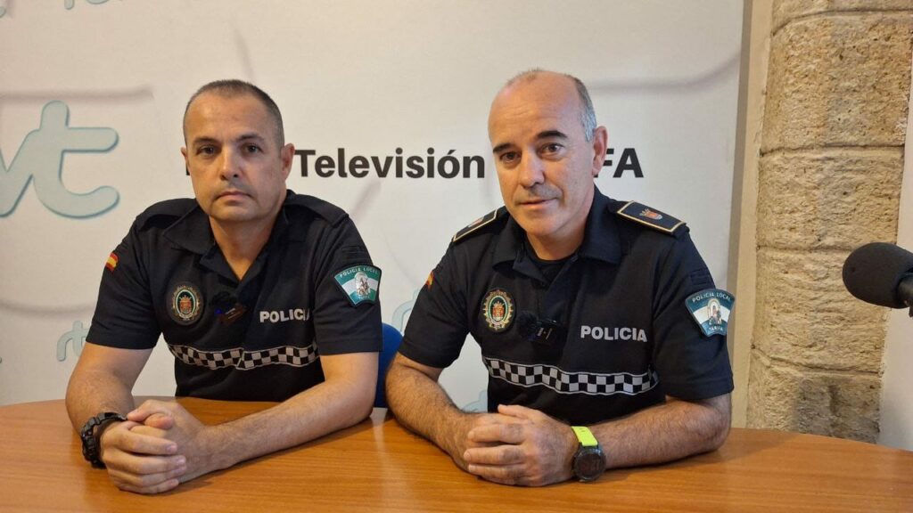Para Pedro Canas y Javier Centeno la satisfacción en estos días es doble. Y es que la fotografía que retrata una de sus variadas acciones formativas entre los escolares tarifeños ha sido escogida para ilustrar el cartel del próximo Congreso Nacional de Agentes Tutor que se celebrará en Sevilla próximamente.