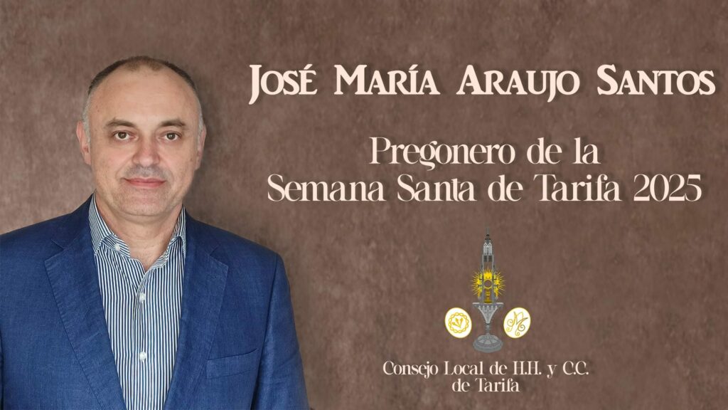 La Junta Permanente del Consejo Local de Hermandades y Cofradías de Tarifa, mediante acuerdo ratificado por el Pleno de dicho Consejo, ha designado como Pregonero de la Semana Santa de Tarifa de 2025 a D. José María Araujo Santos.