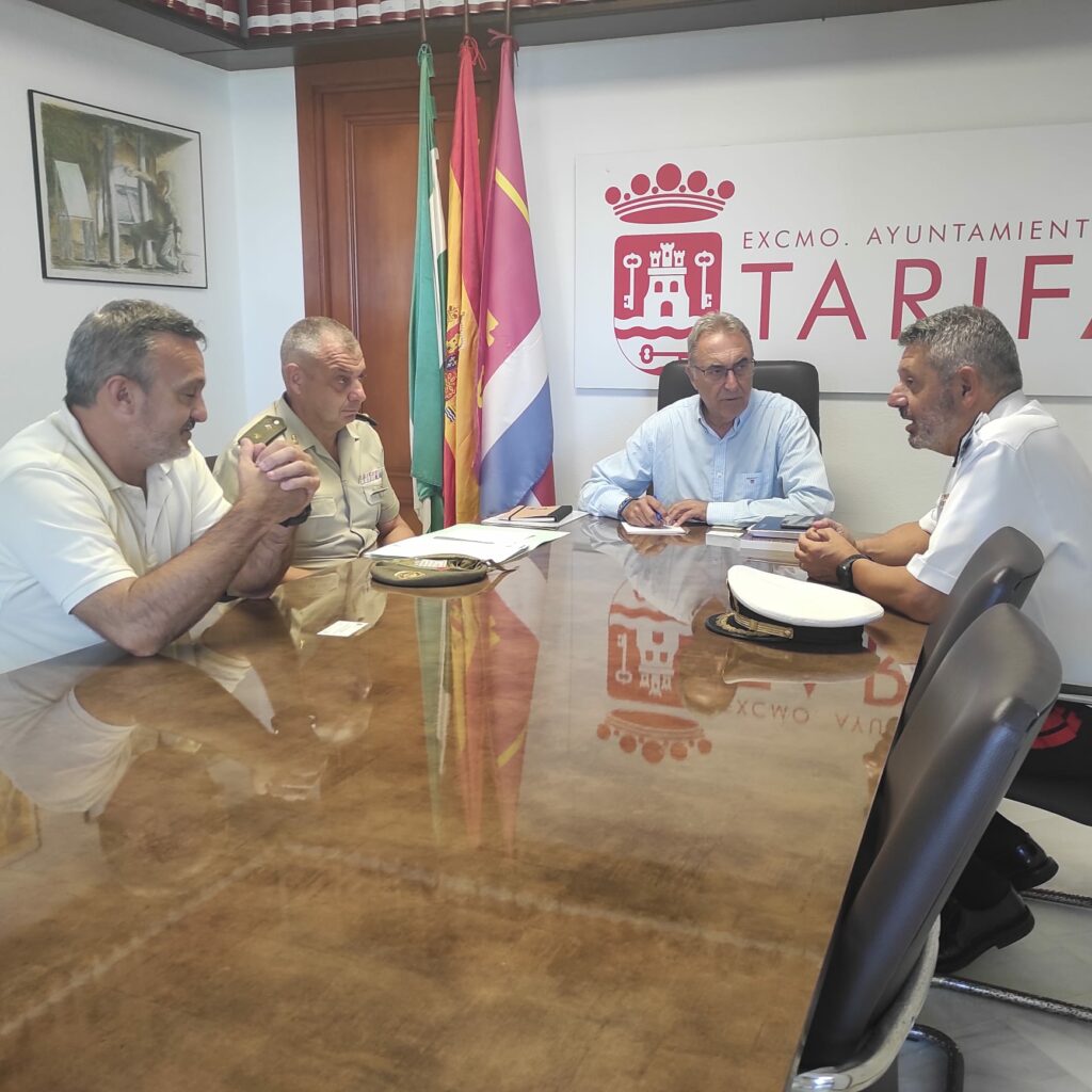 Además de hacer la presentación de rigor ante el nuevo equipo de gobierno, representado en esta ocasión por el Teniente de Alcalde, Jorge Benítez y el Alcalde de Tarifa, José Antonio Santos, en la cita de hoy se ha hecho repaso a la situación administrativa en la que se encuentran caminos rurales de afectación militar, como los de Arroyo Viña o Guadalmesí, por ejemplo, y de baterías de costa que ya están en desuso como las situadas en el poblado de Paloma.