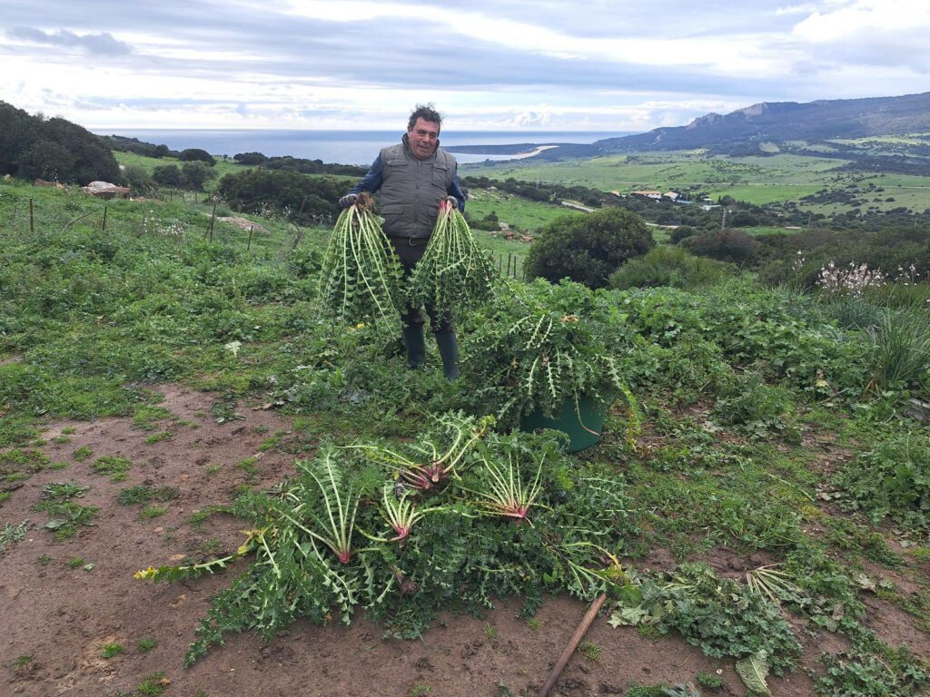 Tagarninas salvajes de Bolonia, a ver quien supera eso. El carnaval de Tarifa llama a la puerta y sin duda su parte gastronómica es indisoluble de esta fiesta de la alegría. En la imagen podemos ver la recogida de tagarninas para la gran degustación de la puchera.