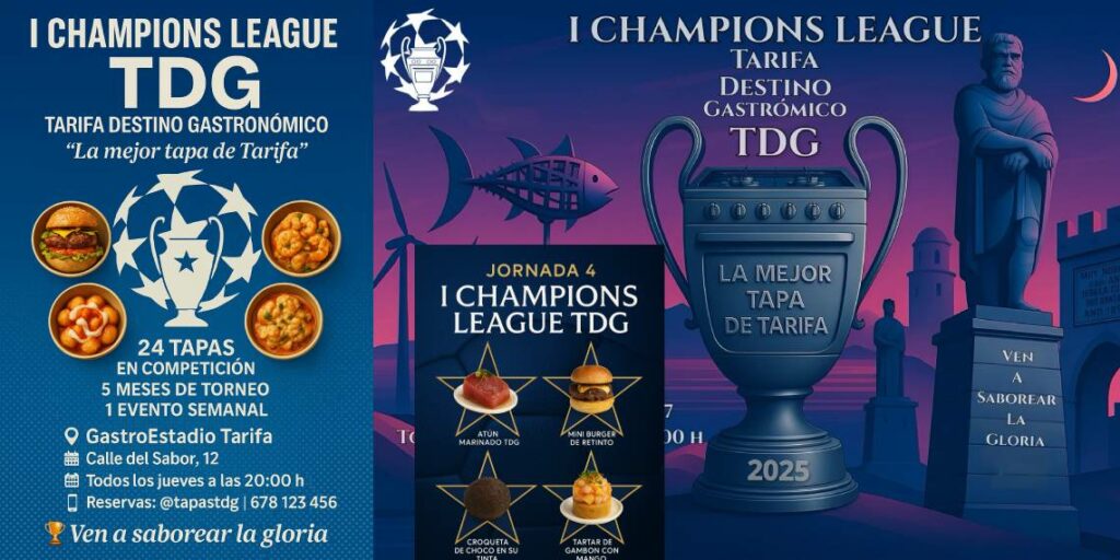 Así nace la I Champions League Tarifa Destino Gastronómico (TDG), una competición inédita que busca coronar “la mejor tapa de Tarifa”. Un torneo con alma, donde los bares y restaurantes locales medirán sus cucharas en igualdad de condiciones, ante un jurado profesional e independiente y con catas públicas que harán vibrar al público.