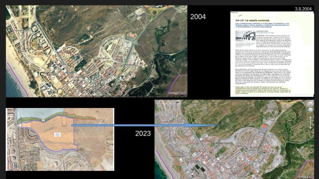 La portavoz recuerda que otras actuaciones urbanísticas similares ya fueron anuladas por la Comisión de Ordenación del Territorio y Urbanismo en 2004, como las de la Cañada de San Martín, Acebuche, Los Naranjos y Los Nogales, todas vinculadas a problemas de vertidos y contaminación.