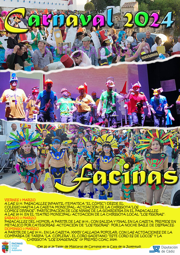 Y como colofón de este Carnaval Facinense, mañana domingo a partir de las 14h, se celebrará la XXXIV Callada Popular, que estará amenizada con las actuaciones de la Comparsa de Tarifa «La Coplera», el coro gaditano «Este Coro es de Locos» y la chirigota 1er Premio del COAC de Cádiz, «los Exageraos».